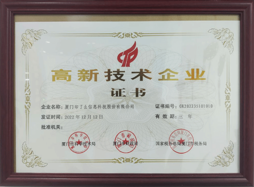 高新技术企业证书